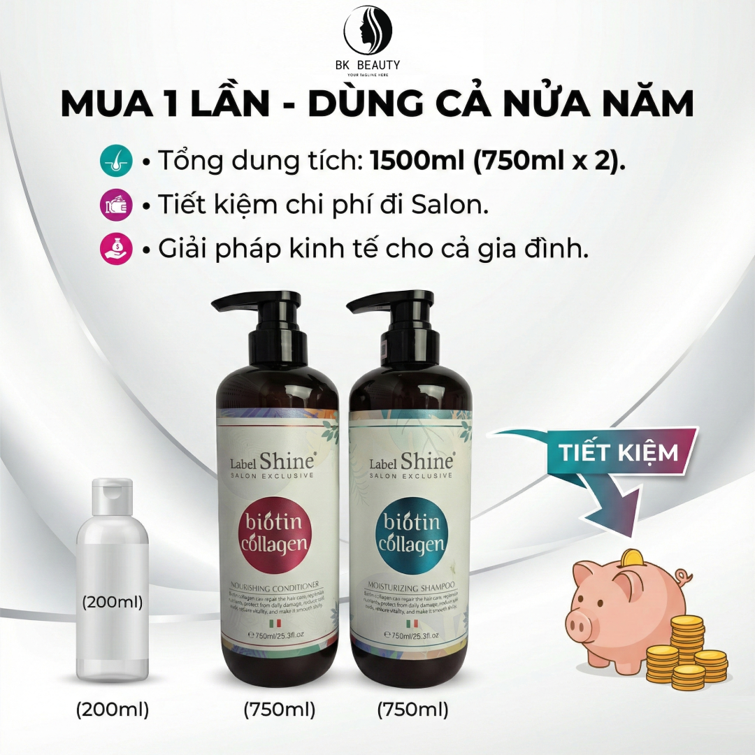 Bộ Gội Xả Biotin Collagen Ý 1500ml (Size Khủng) - Siêu Phục Hồi Hư Tổn, Hương Nước Hoa Sang Trọng